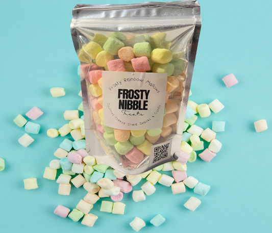 Freeze dried marshmallows Satisfy your cravings with our gourmet freeze dried marshmallows! These delicious treats will melt in your mouth, providing a unique and indulgent experience with every bite. Perfect for snacking on the go, camping trips, or adding a sweet touch to your morning cereal.